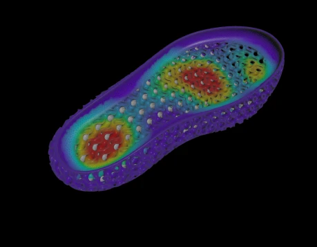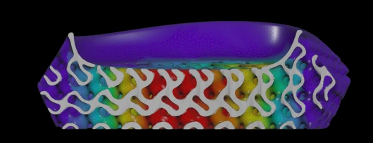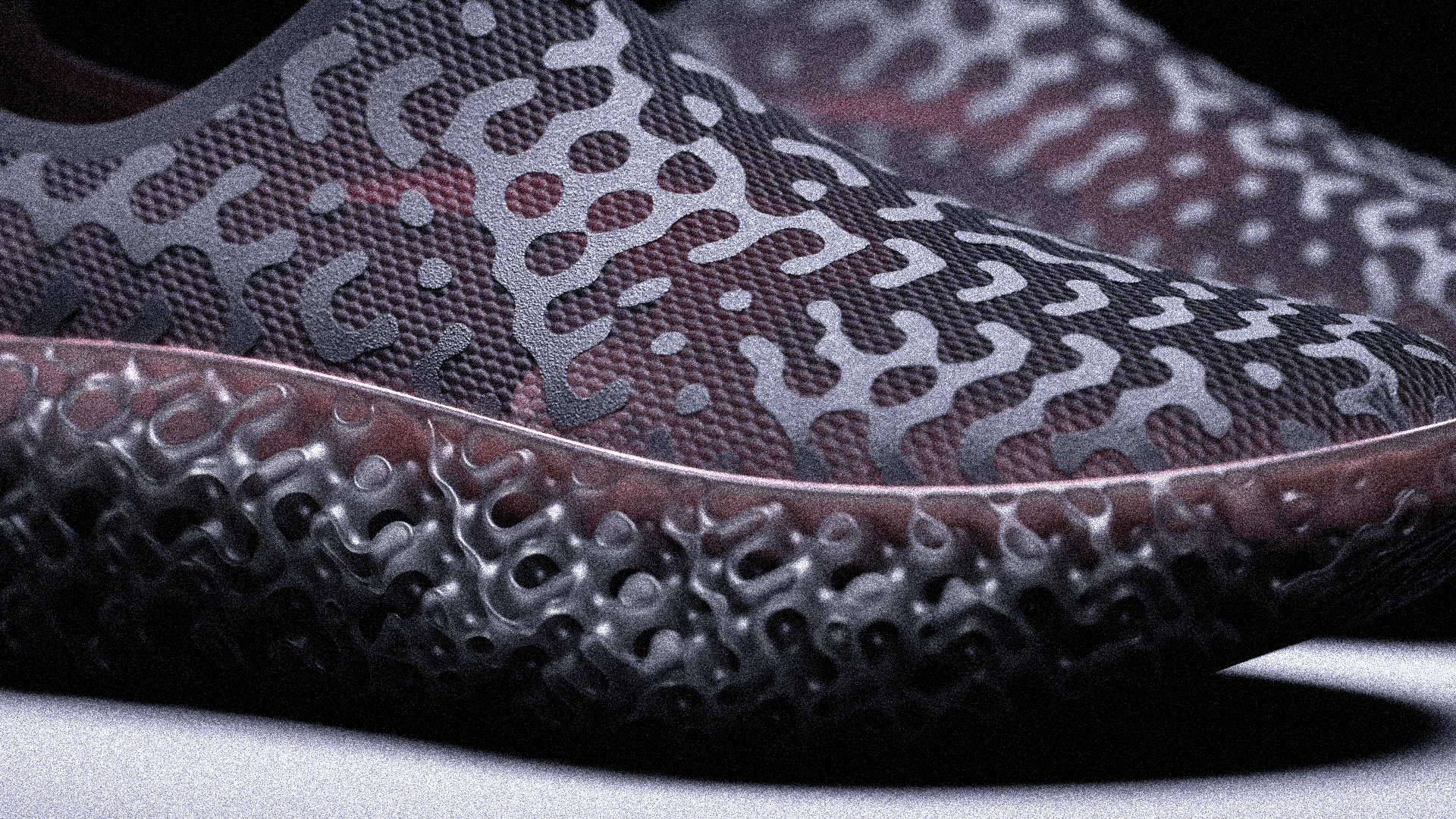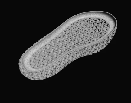 Created with a custom, volume-driven TPMS setup in Houdini to rapidly tune, tweak, and warp additive structures, consuming pressure map data to generate performance optimized midsole and outsole geometry.