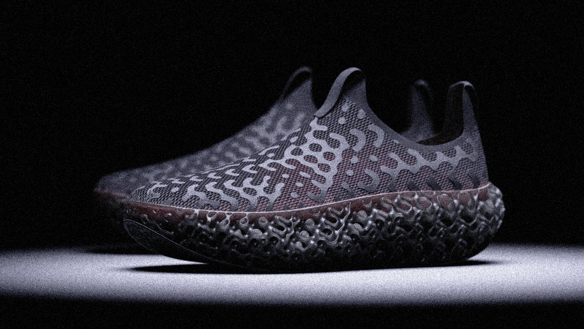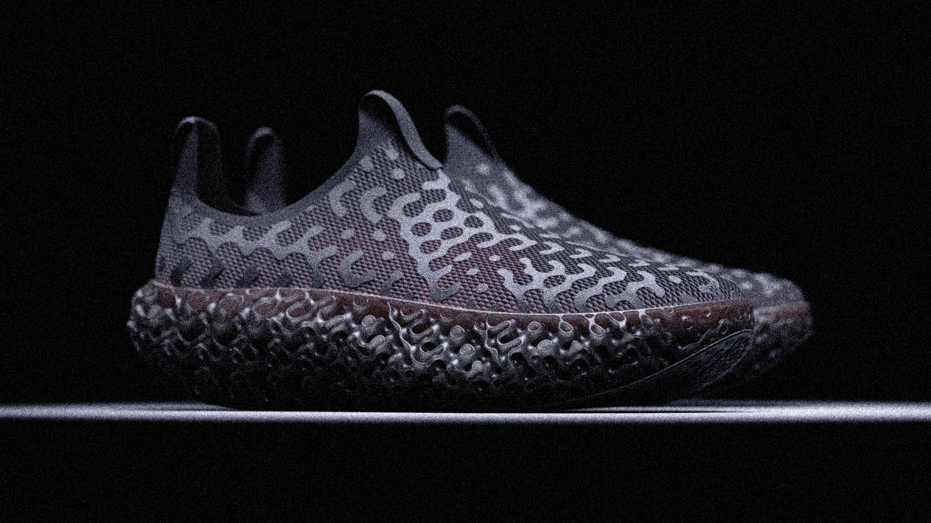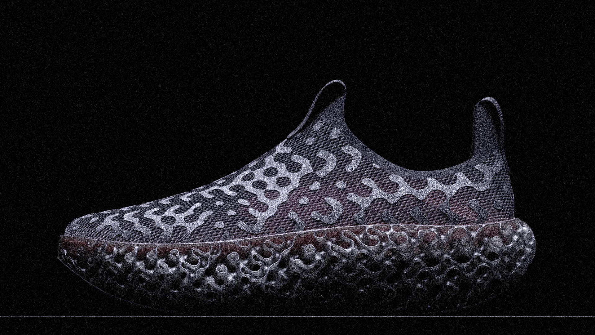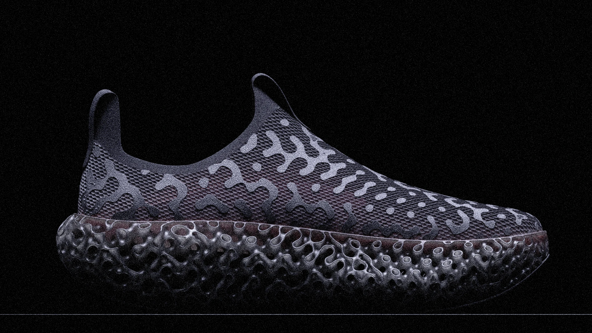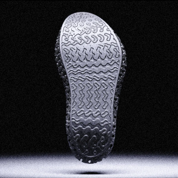 Concept design exploring a unified, performance-driven pattern extending across upper, midsole, and outsole in a hybrid-manufactured footwear product.